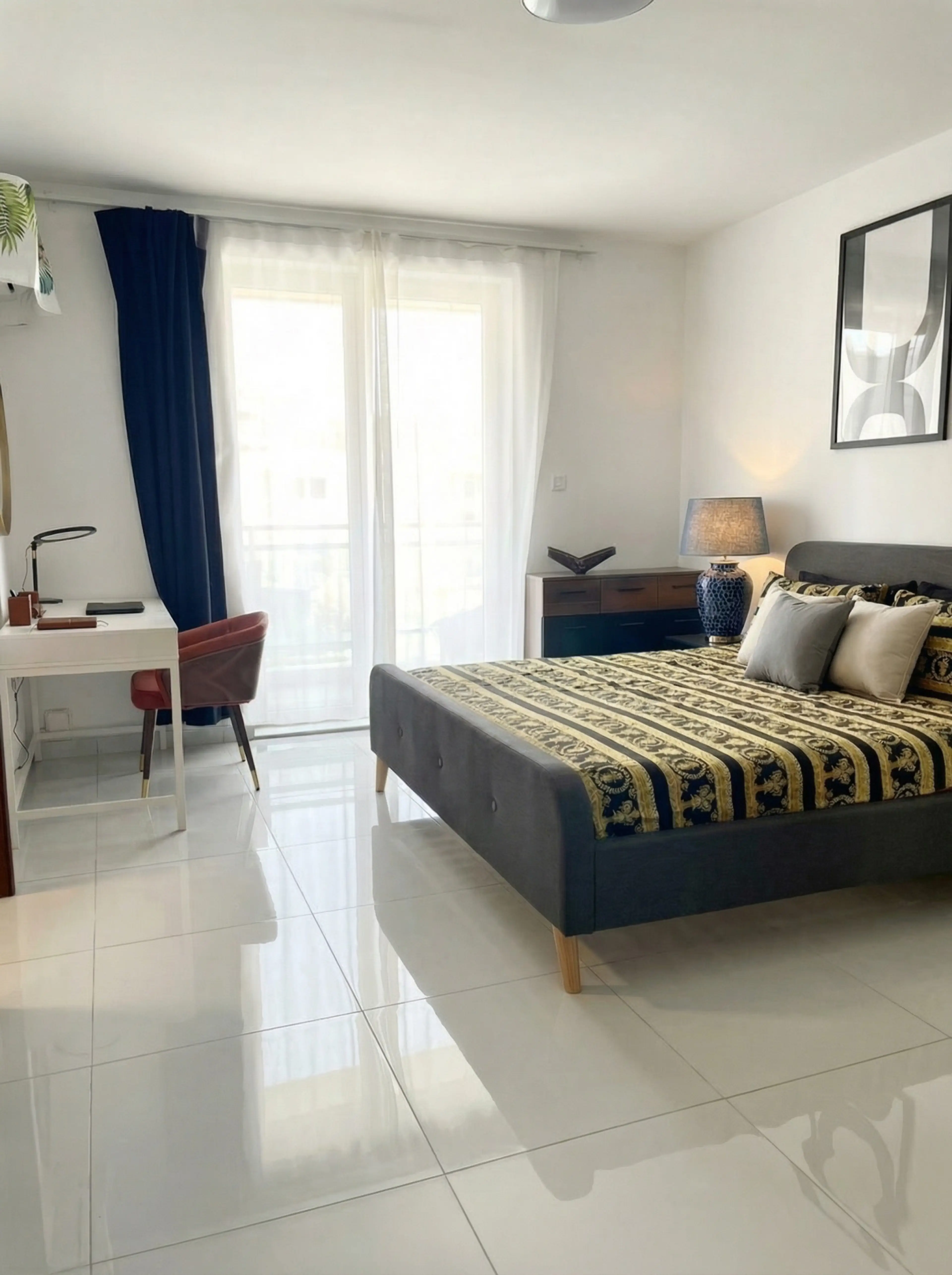 Stylish and modern 125m2 apartment in Qawra, Malta, near the luxurious 5-star hotel AX Odycy. Enjoy sea views from the living room or terrace. Two bedrooms with king beds and two well-appointed bathrooms ensure comfort and privacy. Explore nearby attractions (such Cafe del Mar & BeefBar) , restauran...